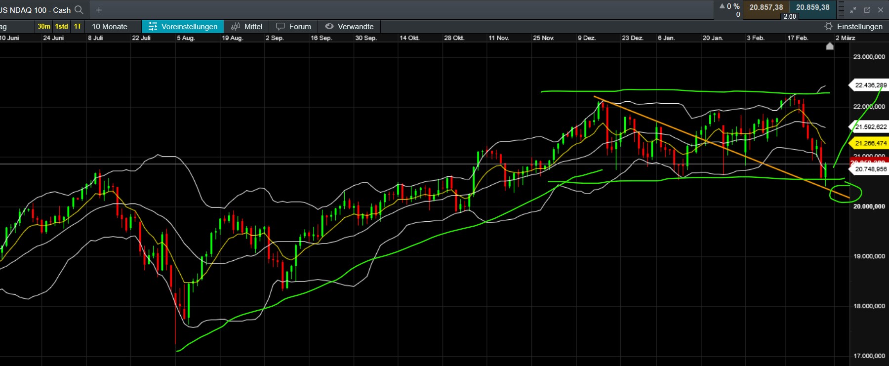 ndx als schlusswort - für mich sieht das am ende eines seitwärtrendes bullsih aus - und scrolled man weiter raus ist es die entlastung eines vorher starken trends - ok ich nehme an nach neuem hoch wird er scheitern - aber das steht noch gar nicht fest....