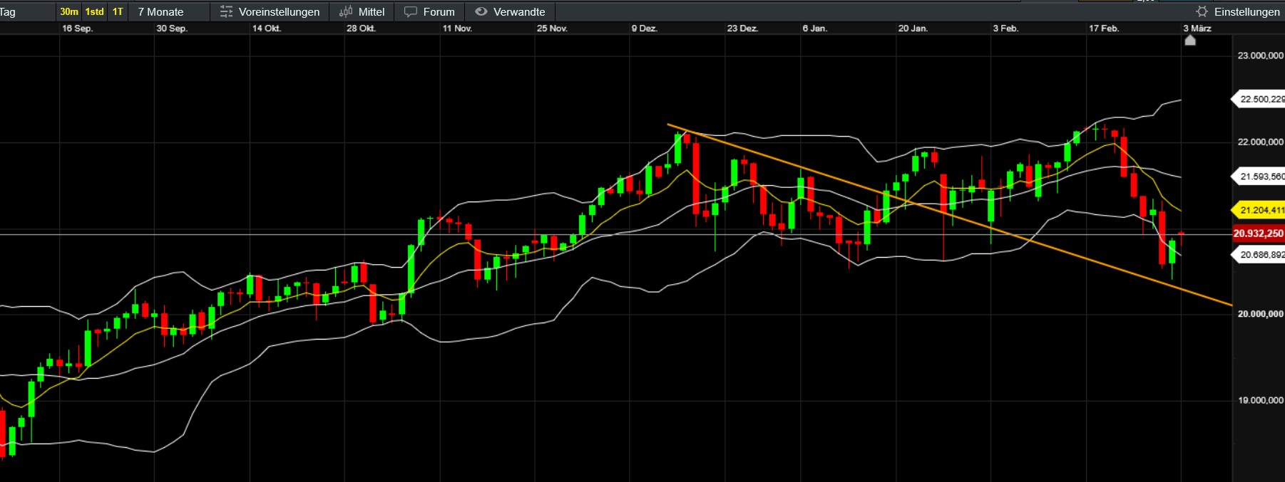 weiss man wann ein keil ausbricht ? ja wenn er ausgebrochen ist - und da coins in nornmalen tagen schon mal gerne 8% rauf und 10% runter nachen um dann erneut 12% zu steigen - wie sehen dann die ausbrüche nach einem bruch aus ? Da ist der ndx den coins ähnlicher als die schlafnase dax - auch wenn dieser viel schwieriger zu handeln ist - alleine die brüche die nach ct ständig überschiessen oder während im nroamlen chart eine korrektur ans 61,8 läuft ständig >70er fibo rumdoktort zeigt schon in welchem umfeld wir uns bewegen
