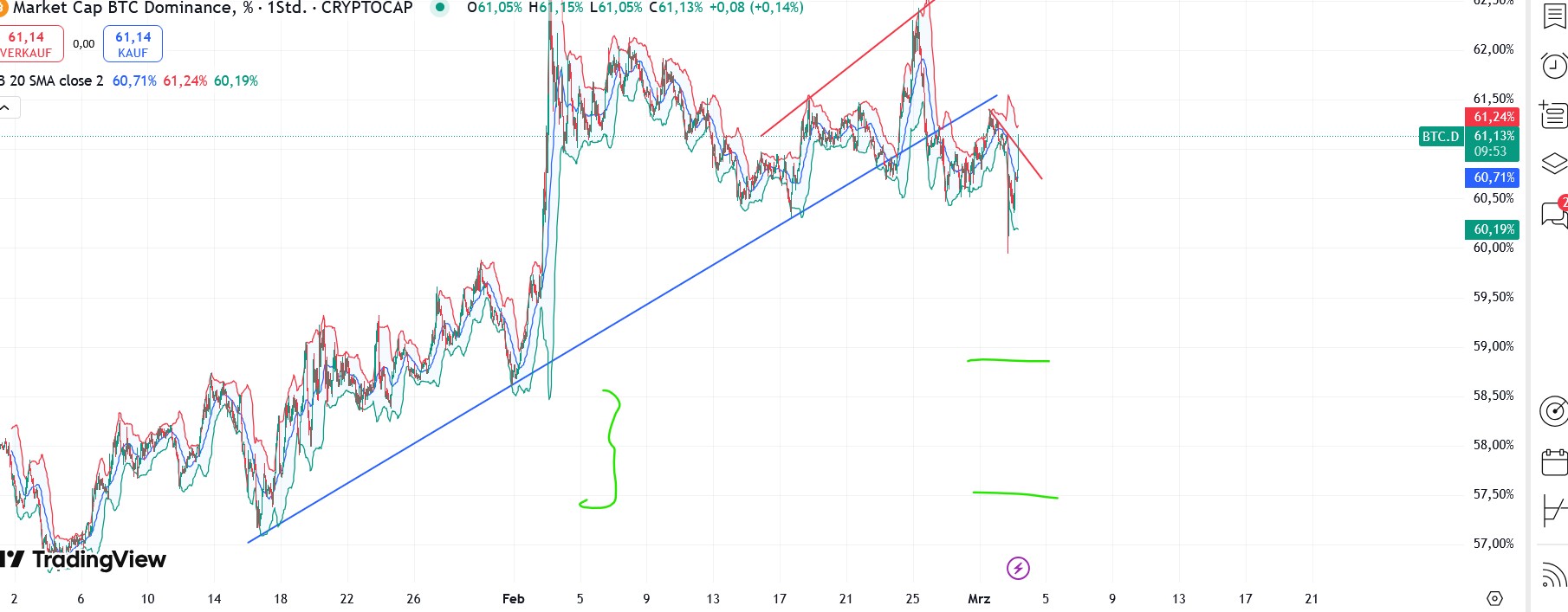 btc dasselbe nur mit einer viel größeren kraft und "alle" coins reagieren die noch dazu ihre eigenen szenarien haben und plötzlich wird der "indikator" btcd etwas unwichtiger - da die schiere kraft des btc alles überstrahlt - DAS muss man erkennen können - oder man hat schlicht glück