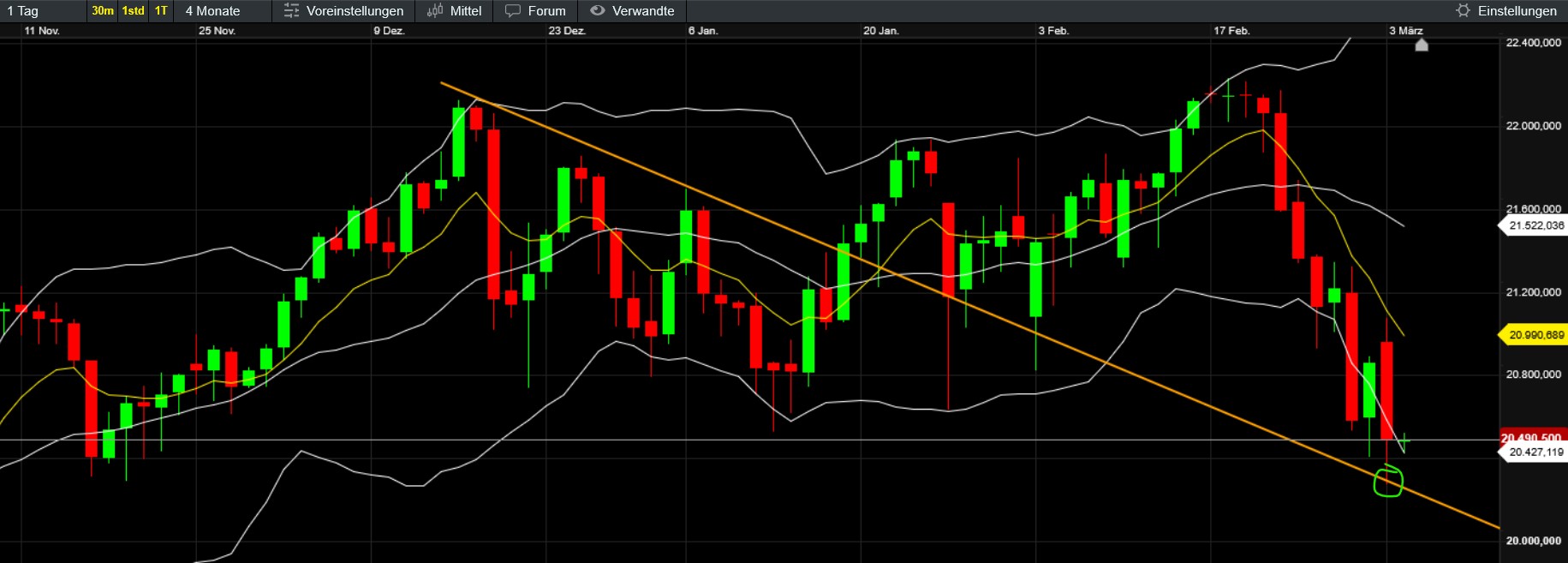 Das Blöde ist das selbst Shorts riskant sind angesichts Vola und Momentum. Es sei denn man hat ein paar langweile lange laufende Scheine ohne KO.