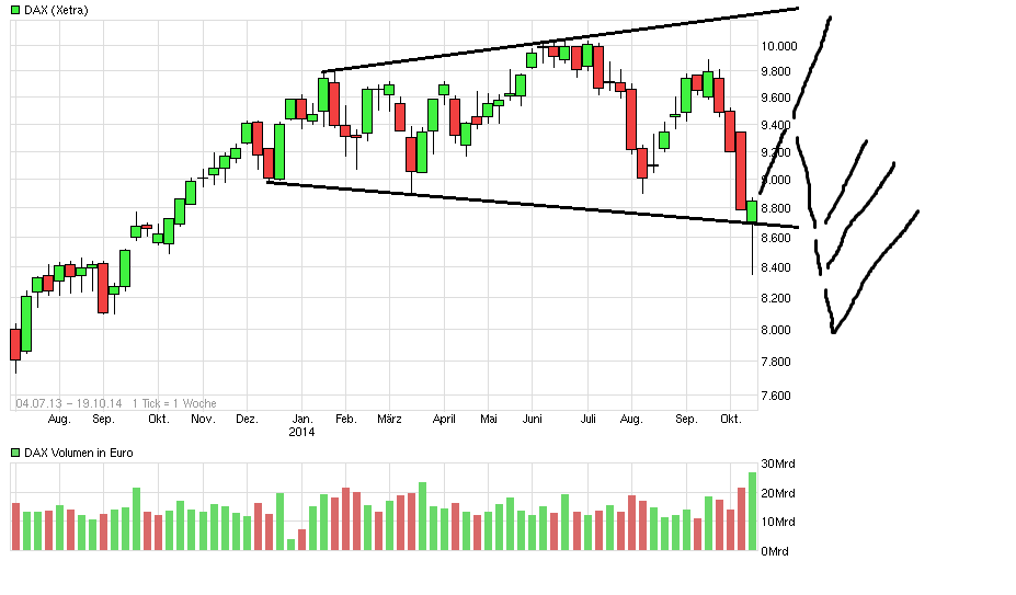 Jetzige Oktoberkerze ist sehr wichtig !!!!!! Wenn der DAX UNTER 9000 ( mBB. ) schließt, ist der Bärenmarkt für mich da ! Und , ob wir nur 8000 sehen oder " meine " 6000 ist irrelewant. Das heißt fürmich nur eins: FALLENDE KURSE !