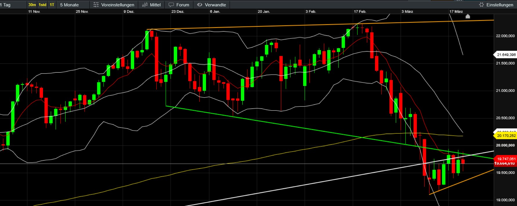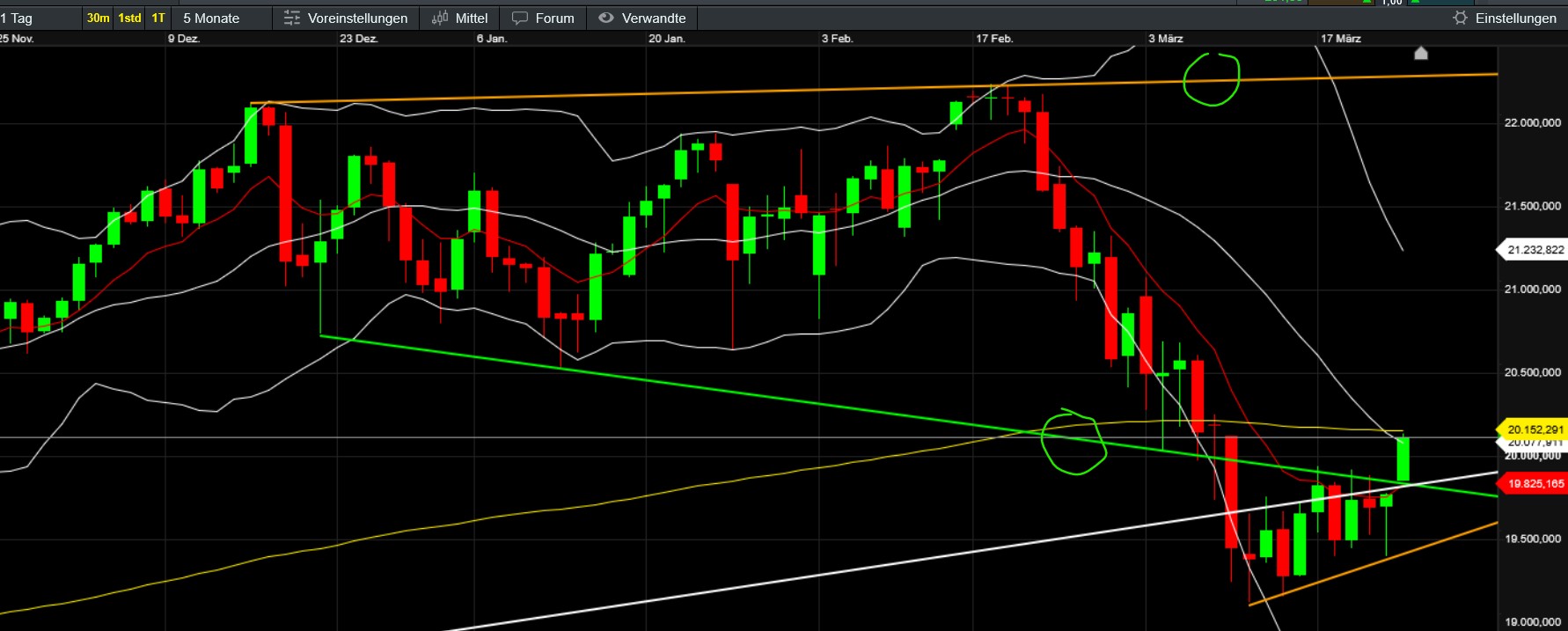 Machen die aber richtig Ernst, wären runde 21k gerade mal ne 38er Korrektur im Weekly und parallel im Bereich MBB. Ich weiß das will man immer so lange wie möglich ausblenden - aber mit dem jüngsten Schuldenpaket haben wir im Daxi einfach auch mal nen Punkt erreicht, an dem auf "gute" News einfach nicht mehr reagiert wird -  es stinkt einfach ganz gewaltig nach einem Nachholen der richtigen Korrektur.