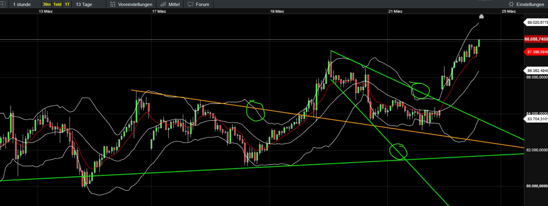 auch dieses szenario ist damit bestätigt - ein test wäre noch möglich - gerade aufgrund der vola - stechen sie aber 88k-89k an wird dieses wahrscheinlich icht mehr kommen da dort viele stop-orders liegen die einen shortsqueeze ausslösen könnten