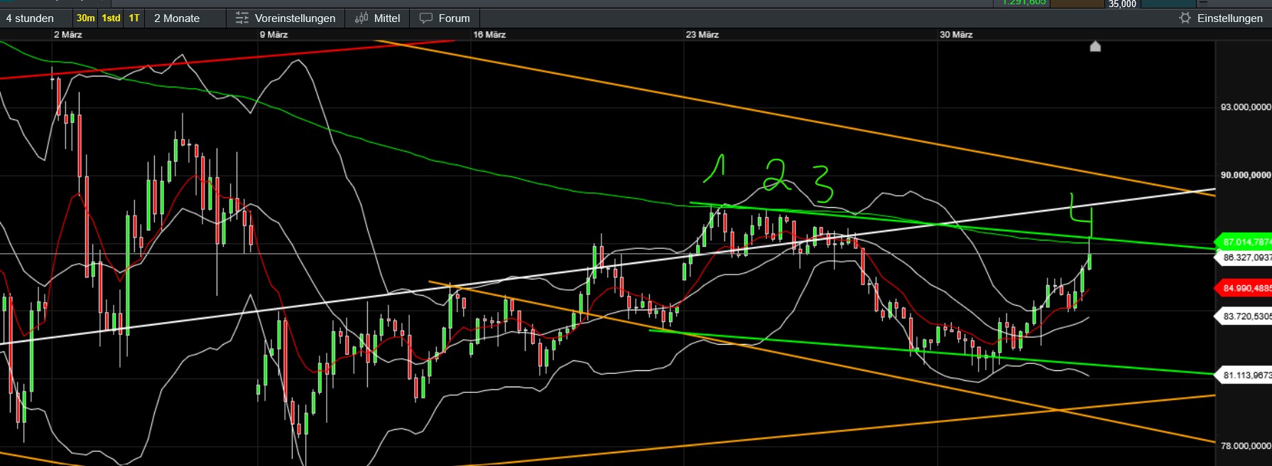 Erst der 1h chart, dann der 30m chart und dann der 15m chart.