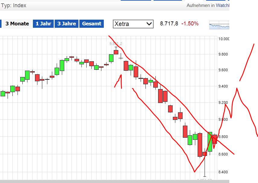 Kann mir für den Fall allerdings nicht vorstellen, dass es im Dax wie von iDonk gepostet vorher nochmal auf 8100 geht. So tief und Jahresendralllye halte ich für unrealistisch. Entweder 8100 oder Jahresendrallye, aber nicht beides. Dafür wird die Zeit zu knapp und das Chartbild wäre auch ziemlich im Eimer, wenn man jetzt noch auf 8100 fallen würde, zumindest auf Sicht von zwei Monaten.