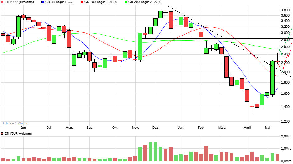 100k - eigentlich wäre auch ein kurzes brechen mit test 96,5 kein beinbruch - nur unschön - solange diese sich sofort erholt - mein maßstab wäre ema9 daily der leicht oberhalb 100k liegt