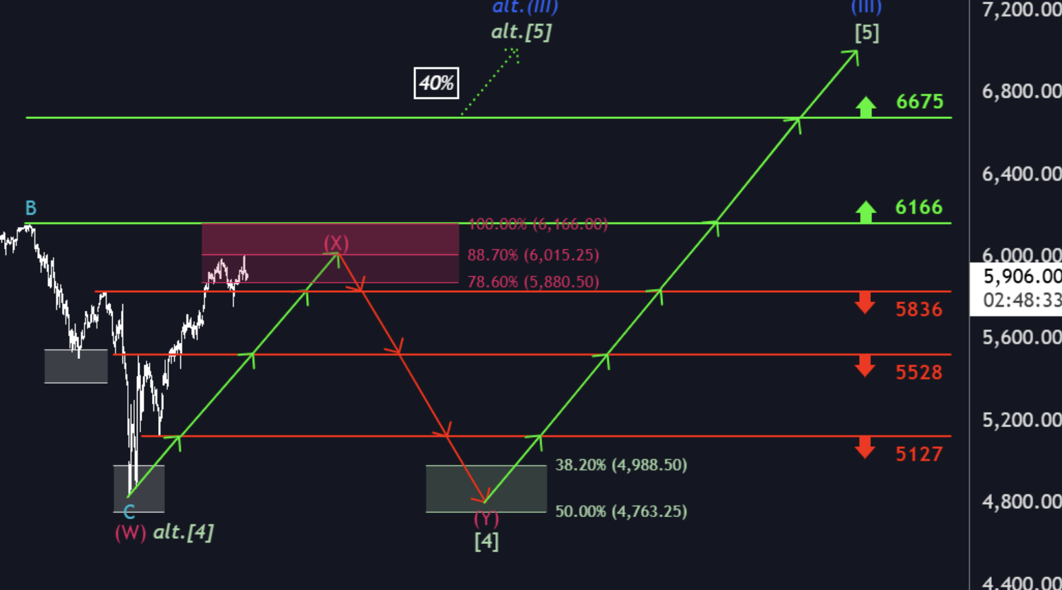 in Bullenmärkten sind die oberen Ziele zu suchen, weil näher dran von 5900 zu 6000 oder von 5900 zu 5600.