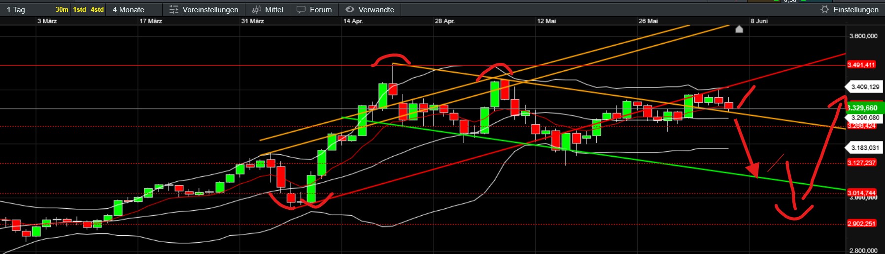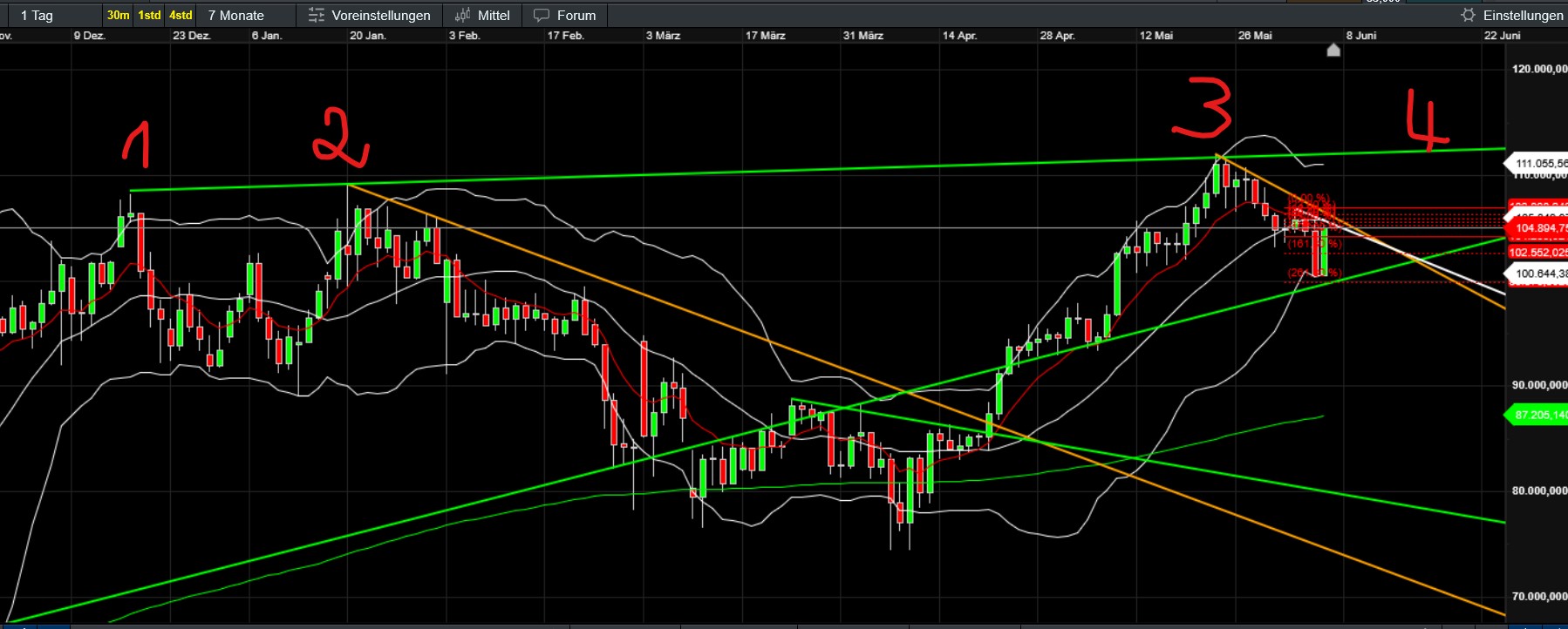 Ich bin durchaus noch locker - da ja bin dir und anderen durchaus noch eine Korrektur erwartet wurde. Trotzdem ist es um Moment echt zäh. Weil du meintest Schmerzgrenze ermitteln und Sl 10 Prozent darunter. Das möchte ich keinesfalls, da ich auch spätestens mittelfristig mit höheren Kursen rechne (jedenfalls bei den Großen wie Bitcoin, Ether, Solana - sofern es keine unerwarteten indiv. fundamentale Probleme gibt). Ich würde mich grün und blau ärgern wenn ich Verluste realisiert habe und dann geht es ohne mich up…was meinst du wie viele sich heute noch ärgern, dass sie seinerzeit beim Bitcoin als er bis 65t+ gestiegen und dann auf 15t gefallen ist, nahe des Hochs gekauft und dann in Panik mit mega Verlust verkauft haben. Heute hätten sie verdoppelt… daher keine Option für mich ich gehe mit bis die Karten am Tisch liegen. Notfalls erhöhe ich den Einsatz noch und warte auch ein paar Jahre…keine Positionen sind ja nicht klassisch zum Trading angeschafft. Plan war schlicht günstig einkaufen und nach dem nächsten starken Anstieg idealerweise zumindest in die Gegend der ATHs zu verkaufen bevor wieder die starken (zu erwartenden) Korrekturen kommen. Dann wieder rein etc…