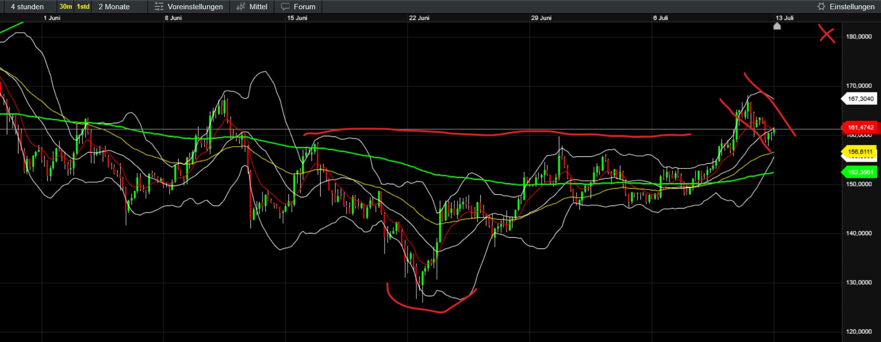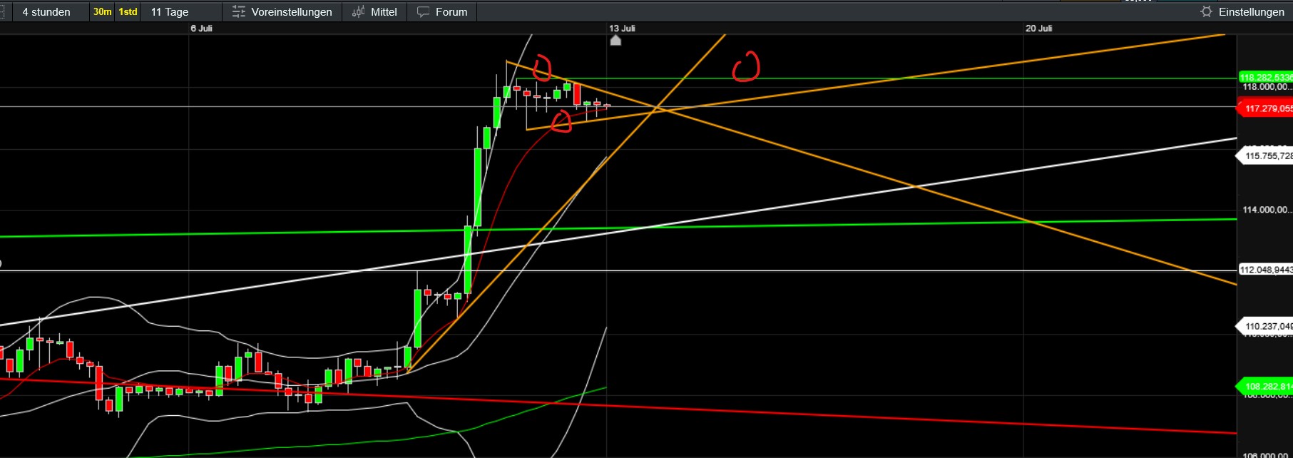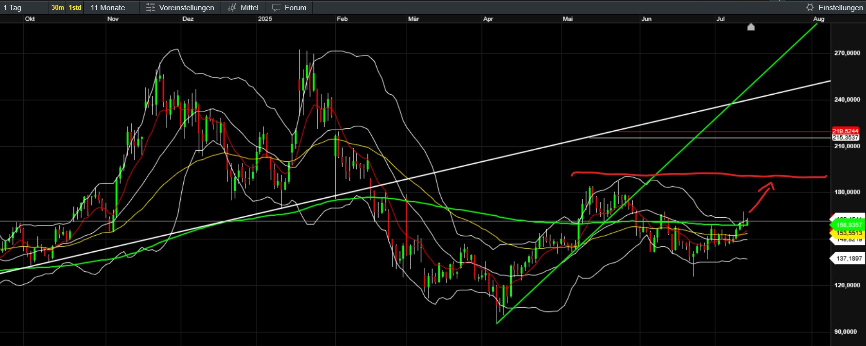 Da ich derzeit bei Ether 50%, XRP 34, bei Sui 32, beim ETF 4 Prozent im Plus bin und meine große Solana-Position endlich wieder bei 0 steht, wie auch fast schon wieder Bitcoingroup, möchte ich natürlich unbedingt vermeiden, den Ausstieg wieder zu verpassen. Mir ist aber bewusst, dass im Idealfall noch (unmittelbar) einiges drin sein könnte. Ein unmittelbarer Ausstieg ist für mich daher keine Option. Mich würde aber eure Einschätzung insb. was die Zeitleiste und das ggf. wahrscheinliche Korrekturpotential während eines allfälligen Sommerlochs betrifft… Natürlich hoffe ich nach wie vor insgeheim, dass jetzt zumindest noch eine Altcoinralley folgt, die zB Solana auf zumindest 185, besser 200-220, Ether auf zumindest 3500-4000 bringt.. dann wäre die Entscheidung (sofern es da dann langsam hakt und nicht fundamental alles auf klar und unmittelbar weiter up hindeutet) leichter…