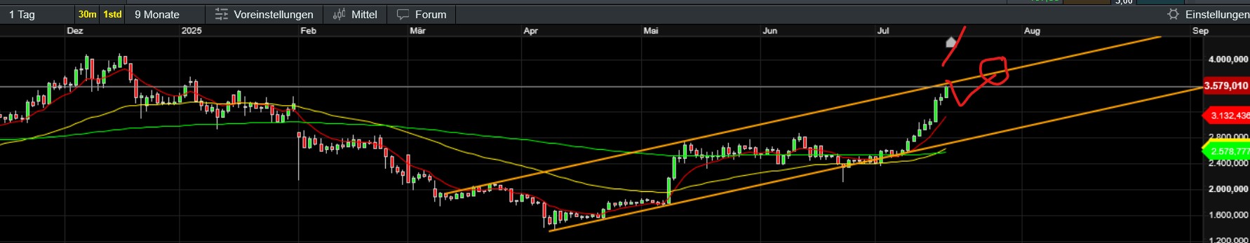 Meine Papierhände fangen an zu zittern. Nach der aktuellen Ralley zerbreche ich mir ernsthaft den Kopf, ob es nun nicht gut wäre zumindest Teilgewinne mitzunehmen. ETH + 80%, XRP + 64, SUI + 38, Solana (nach fetten Minus) +9. Wobei der Druck hoch natürlich irre ist (während ich geschrieben habe zündet ETH zB anscheinend schon wieder…und könnte tatsächlich unmittelbar die 4000-4100 attackieren. Solana beim immens wichtigen Bereich 183-187 angekommen. Gehts da drüber …Kurzum was meint ihr? Cool (da wohl noch mehr kommt) bleiben auch wenn es ein paar Prozent runter geht?