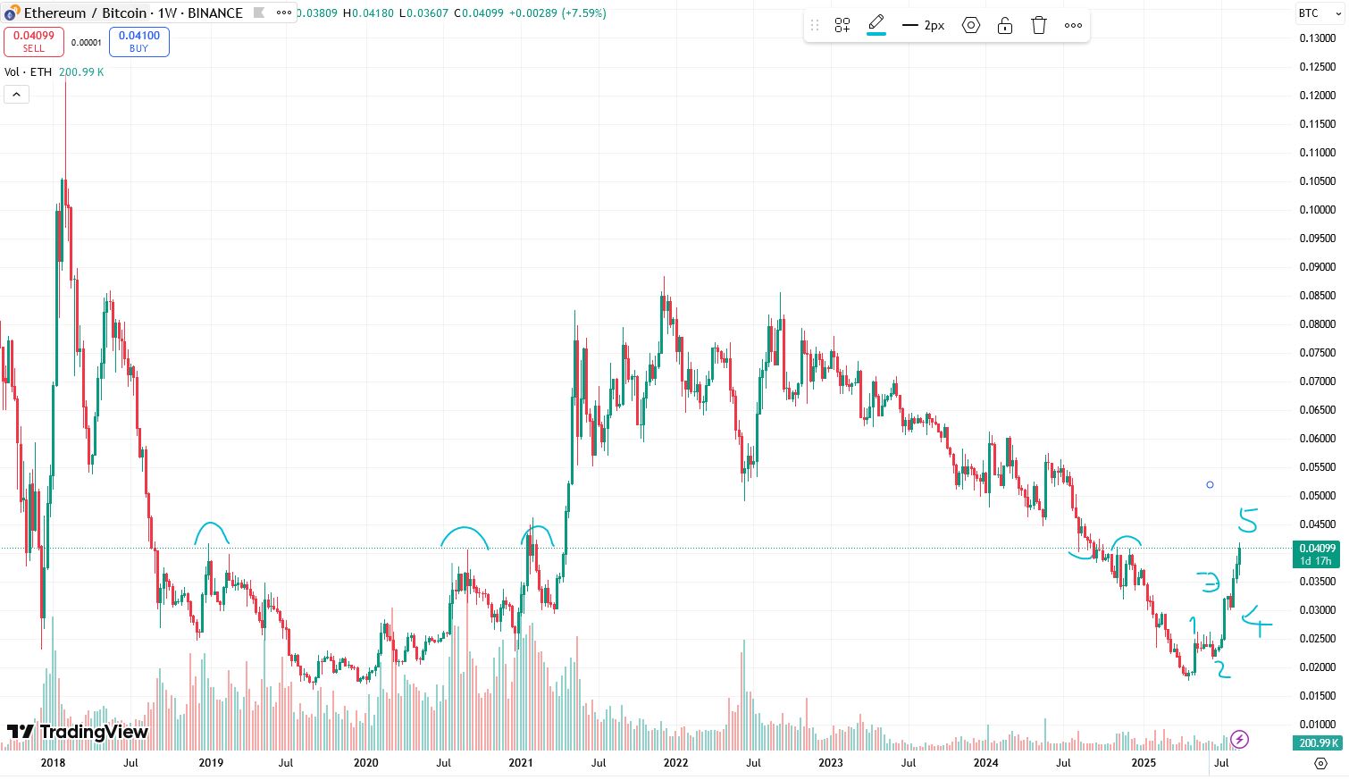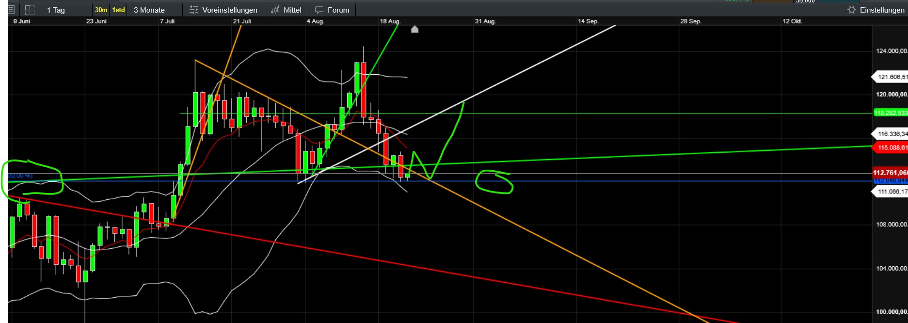 guckt man sich die struktur an - bestand seit hoch die gefahr dass er den bereich 110-112 testet - haben wir ja auch erwähnt - ich hab da so mein kribbeln dass sie sich langsam impulsiv auf dne weg machen muss und genauso wäre in worst case auch btcd zu sehen - bei btcd muss das nicht so kommen - aber im blick sollte man es haben