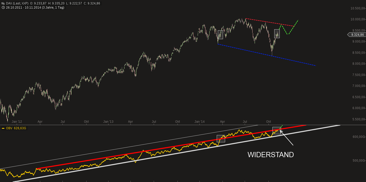 Das OBV Signal ist an einem Widerstand angekommen....Darüber dürfte es schnell auf die 9800 gehen...ansonsten droht ein erneuter Absacker....aber richtiger Absacker....