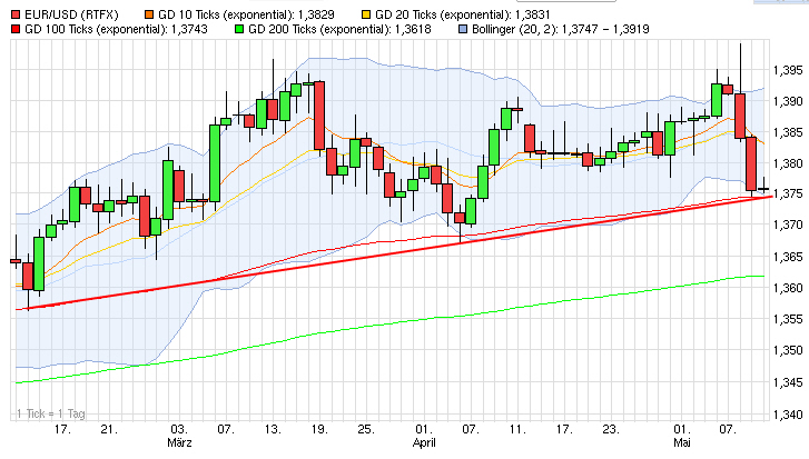 EUR/USD wird auf Tagesebene von der EMA 100 unterstützt und im weekly vom mBB. Somit stehen die Chancen für einen Long gut.