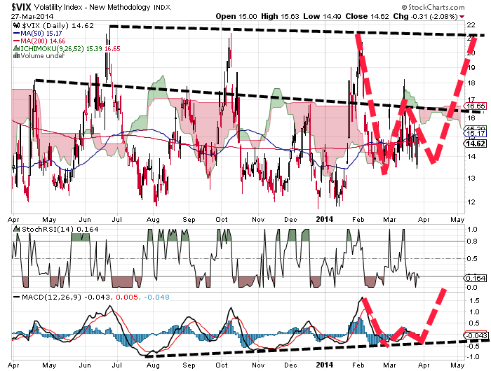 Ich sehe da W's sowohl für den Vix Chart als auch für das MACD Signal....Sieht so aus, dass der Vix bis Mai relativ ruhig bleibt....und dann wieder steigt.....Sieht nach "sell in  May/June aus"......