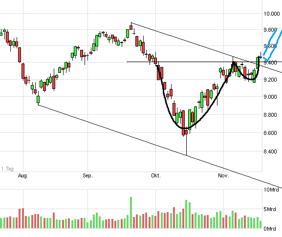Dann wäre ich auch glücklich und könnte sogar nach Nachkauf gestern mit Plus aussteigen, bevor es gen 10 000 womöglich geht.....