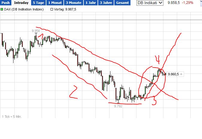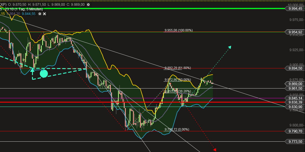 Für short - jetzt sofort kurz unterhalb 50er RT (risikoreicher) oder mit Bruch 9770 prozyklisch morgen.