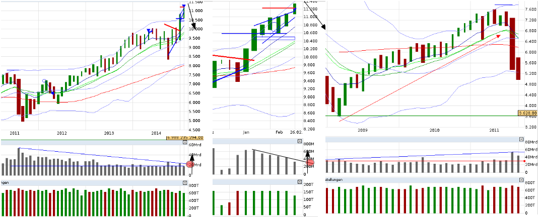 Zum Abschluss ganz rechts im Bild die Volumenentwicklung eines relativ "gesunden" Anstieges von 2009 bis 2011.
