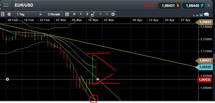 Scheitert momentan an der ehemaligen Unterstützung bei ~1,0643. Aus dem Kanal ist er auch gefallen. Mal sehen was heute Nacht passiert.