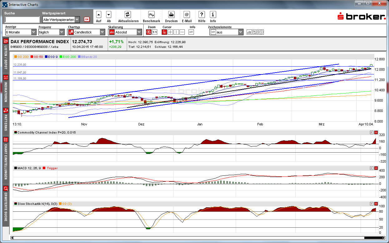 Einerseits überlegt mittlerweile sogar die Schweizer Nationalbank mit ihren gigantischen Euro-Reserven Aktien zu kaufen (siehe weiter oben). Allein die bloße Information über ein bisher nur mögliches Vorhaben spricht für weiter steigende Kurse.