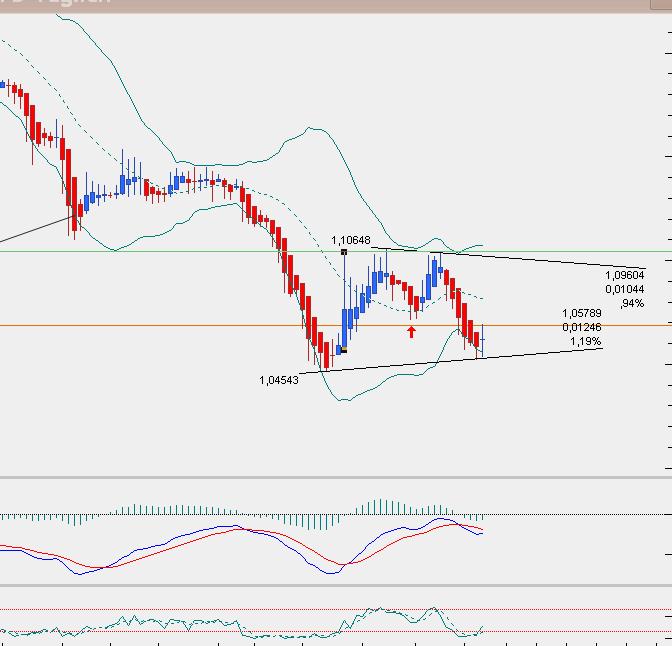 der Euro hat kein neues Tief markiert, stattdessen ein etwas höheres, wir könnten jetzt einen Daily Wimpel ausformen, zudem bastelt der Euro auf Daily an einer pot. Heikin UShi Umkehrkerze, wird diese dann bestätigt durch eine lange blaue Kerze ohne Lunte mit langem docht ist davon auszugehen, dass wir wieder in richtung 1,10xx laufen in ein tieferes Hoch (nach 3.Pushes auf 1,10xx, jetzt ein tieferes Hoch, in den pot. Wimpel....) soviel zum Euro, ist mir gerade ins Auge gesprungen...