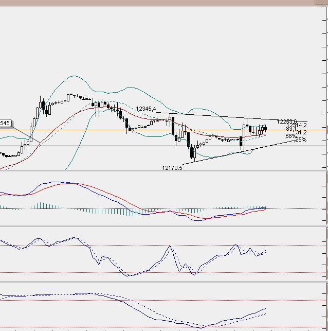 Am Besten wäre das pot. 60er Dreieck morgen noch auszucuven und dann FReitag aus dem morgigen pot. ID innerhalb der heutigen Range (in die Zukunft gedacht) ausbricht, dann hätten wir vom Tief des pot. Dreeick 12178 und zum Hoch 12341 gut 160 Punkte Ausbruchspotenzial für den kleinen Verfall am FReitag , das würde passen, natürlich nach oben in Richtung 12350/400 + xxx..(rember Big Calls die ins Geld müssen..)