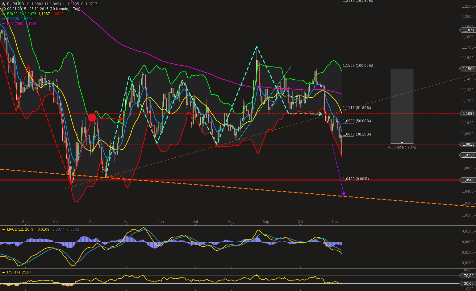auch den Bruch hatten wir erwartet - Ziel jetzt 1,03 (das ist die Unterkante dieses Mega-Ewig-Kanals). Ab da werden US Unternehmen dermaßen stöhnen, dass die FED sich was einfallen lassen muss.