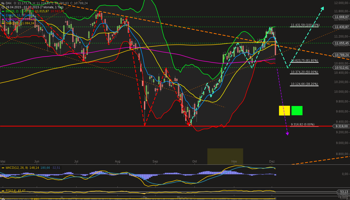 ... zudem haben sich nun neue Ziele aktiviert, da die Aufwärtstrendgerade gebrochen wurde ...