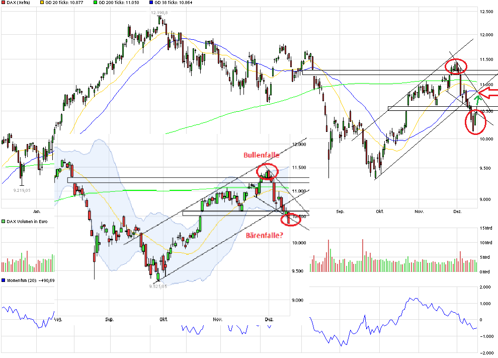 ... spätestens bei ca. 10.800 könnte es dann zu kurzfristigen Gegenbewegungen kommen ...
