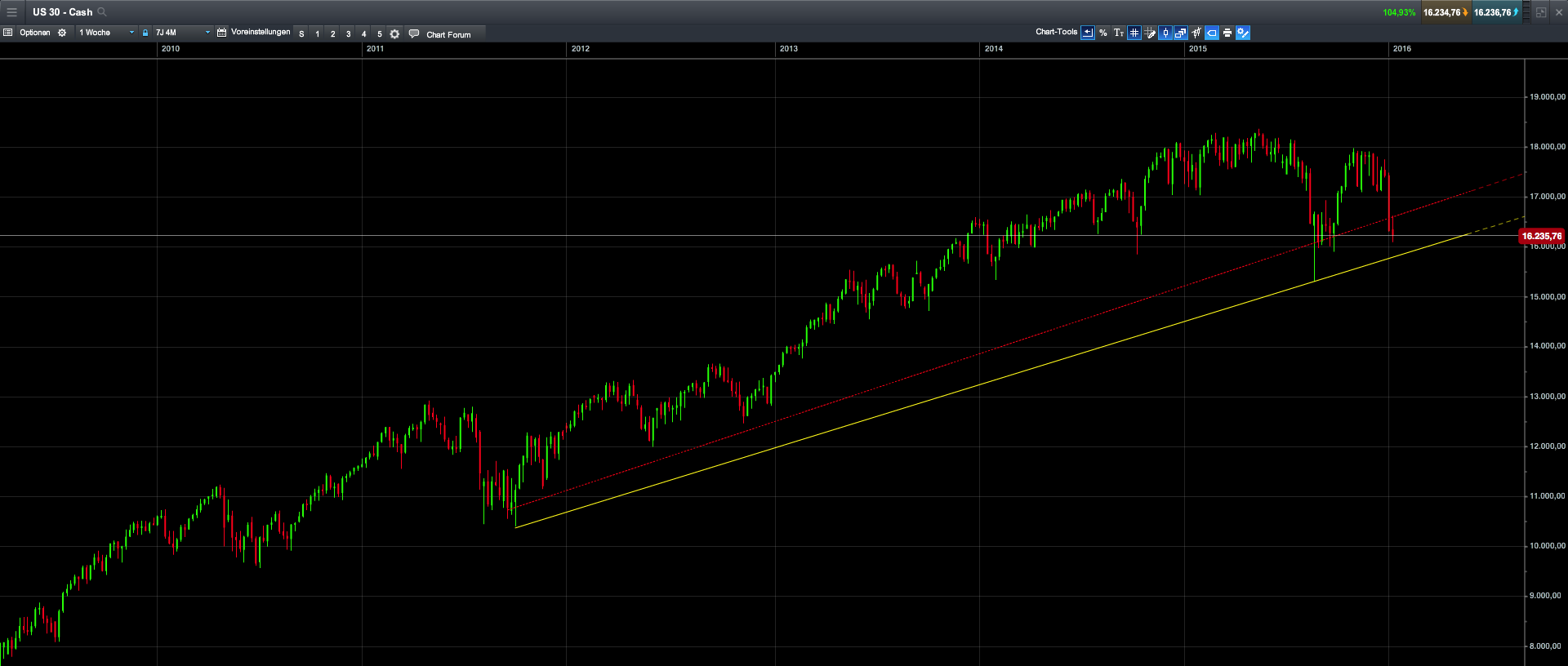 1. China"probleme": die Wirtschaft dort wächst IMMER NOCH, wenn auch nicht mehr zweistellig. Die auf Pump gekauften Aktien trieben die Börsen in CN auf utopische Höhen von rd. 5.400. Nun platzte die Blase auf fast 3.000 in Shanghai. Das Problem ist seit August/September 2015 bekannt und längst eingepreist und zwar weltweit. Was folgt nun? Erneute Einpreisung? Von was? Die Chinesen werden alles tun, um keine weitere Panik und Unruhen aufkommen zu lassen,