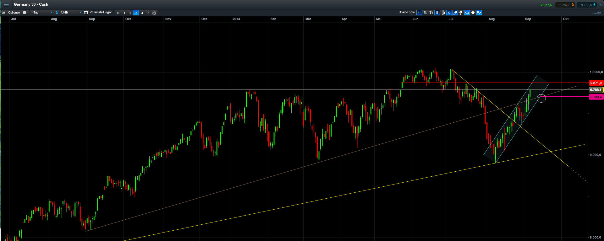 Desweiteren bedeutet dies auch nicht, dass man im Daytraiding (wenn ich Zeit habe) konträr seiner mittelfristigen Aussage, mal kurzfristg long gehe.