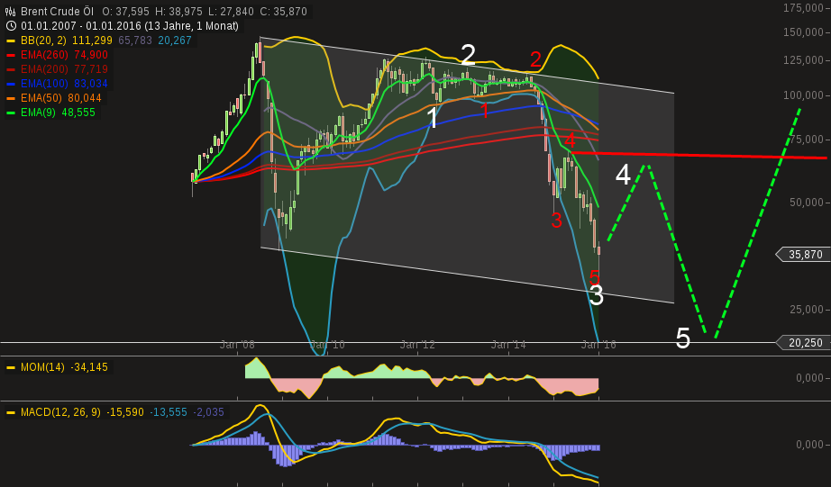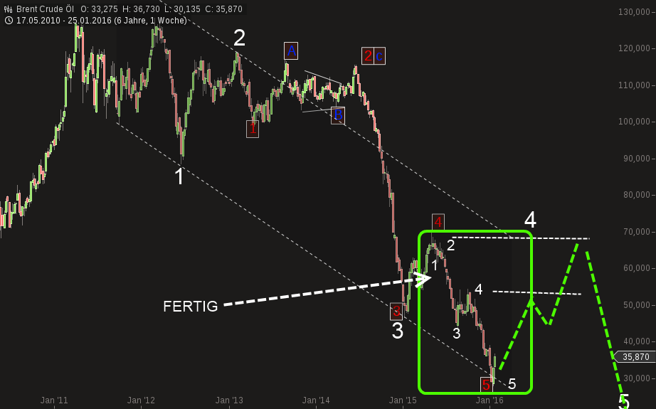 Demnach befinden wir uns in einer Welle c, die den Ölpreis unter Niveau 2008 bringen wird....20 wären plausibel