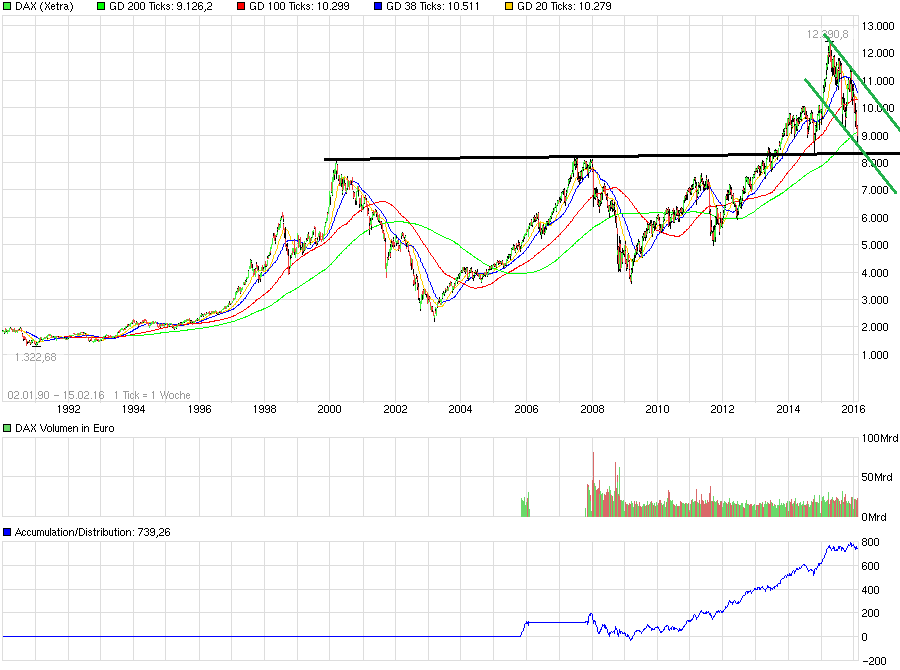Beim DAX kann man charttechnisch einen steileren Abwärtstrend einzeichnen, hab ihn blau eingezeichnet. Interessant ist, dass bei 9800 die untere Trendlinie vom kurzfristigen Abwärtstrend, genau mit der langfristigen Trendlinie aus dem Wochenchart zusammentrifft. (er meinte eher 8800)