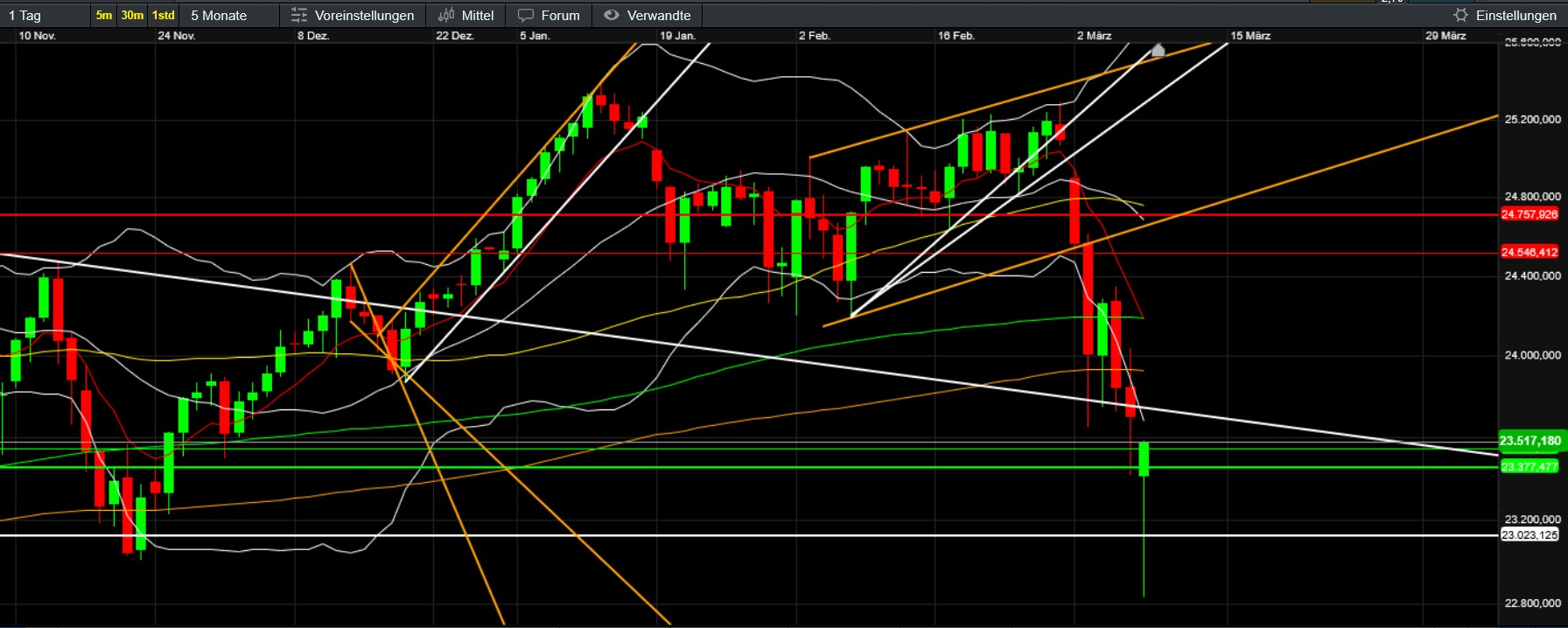 Meine persönliche Herangehensweise ist dabei die technische Analyse ohne Anspruch auf Vollständigkeit - es wäre schön wenn Dritte Ihre eigenen Kenntnisse/Vorlieben u.ä, mit Bezug auf Börse einfliessen lassen würden.
