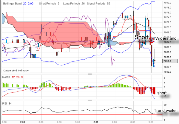 Das Aufwärtsmomentum hat deutlich nachgelassen. Zwei Fehlausbrüche nach oben, mehrere Aufwärtstrendlinienbrüche, Indikatoren mit klaren Divergenzen - hier ist etwas im Busch". Das zeigen die rekordhohen Shortpositionen der Commercials" an der US-Börse übrigens (höher als am Apriltopp 2011!) noch deutlicher. Es ist letztlich nur die Frage, wann genau sich diese Situation entlädt. Wenn Sie eine Grippe bekommen, kommt die auch nicht über Nacht, sondern kündigt sich lange vorher mit einem Kribbeln in der Nase an. Das macht das Trading nicht unbedingt einfacher, aber das gehört nun einmal zu den Gegebenheiten der Börse.