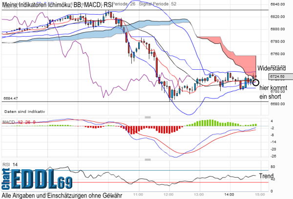 Übergeordnet haben wir noch die angesprochene Seitwärtsspanne 12931 F /13243 F. Heutiges TT waren 12927 F.