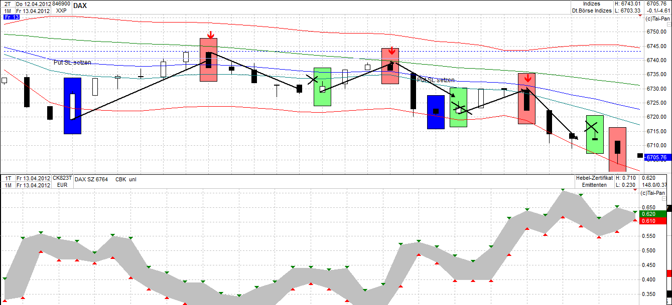 Es gibt somit wenig Hoffnung, dass der DAX ohne neue Apriltiefs auskommt. Spätestens ab 6840 dürften wieder Verkäufer den