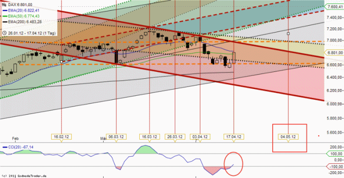 Bei Blick auf den Tagesausblick war die „Kiste“ nämlich ebenfalls charttechnisch eindeutig, aber in die andere Richtung, dass mindestens ein Test der EMA 200 bei 6480 für diese Woche an stand.