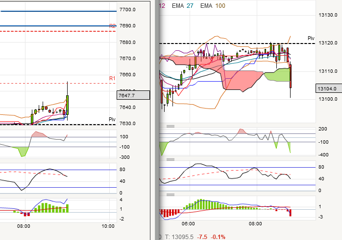 weiterhin Seitwärtshandel mit Unterstützung bei 7600. Öl und Euro ziehen weiter an.