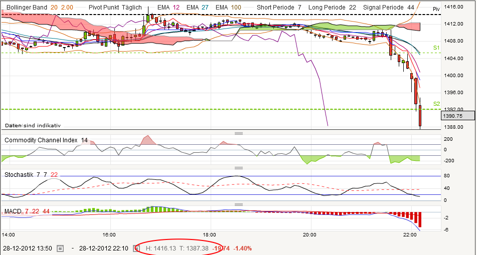 Falls der Dow am Montag nochmals 2 % abgeben sollte gehe ich davon aus dass wir am Mittwoch gleich zu Beginn 150-200 Punkte tiefer eröffnen.