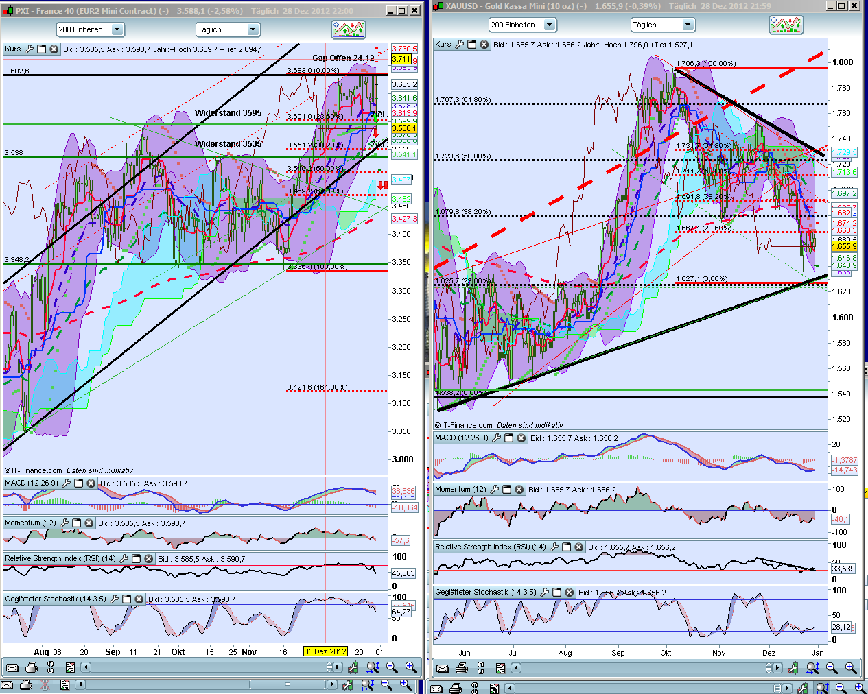 Die kurzfristigen charttechnischen Aussagen für Silvester und die 1.Handelswoche 2013 dazu sind folgende: