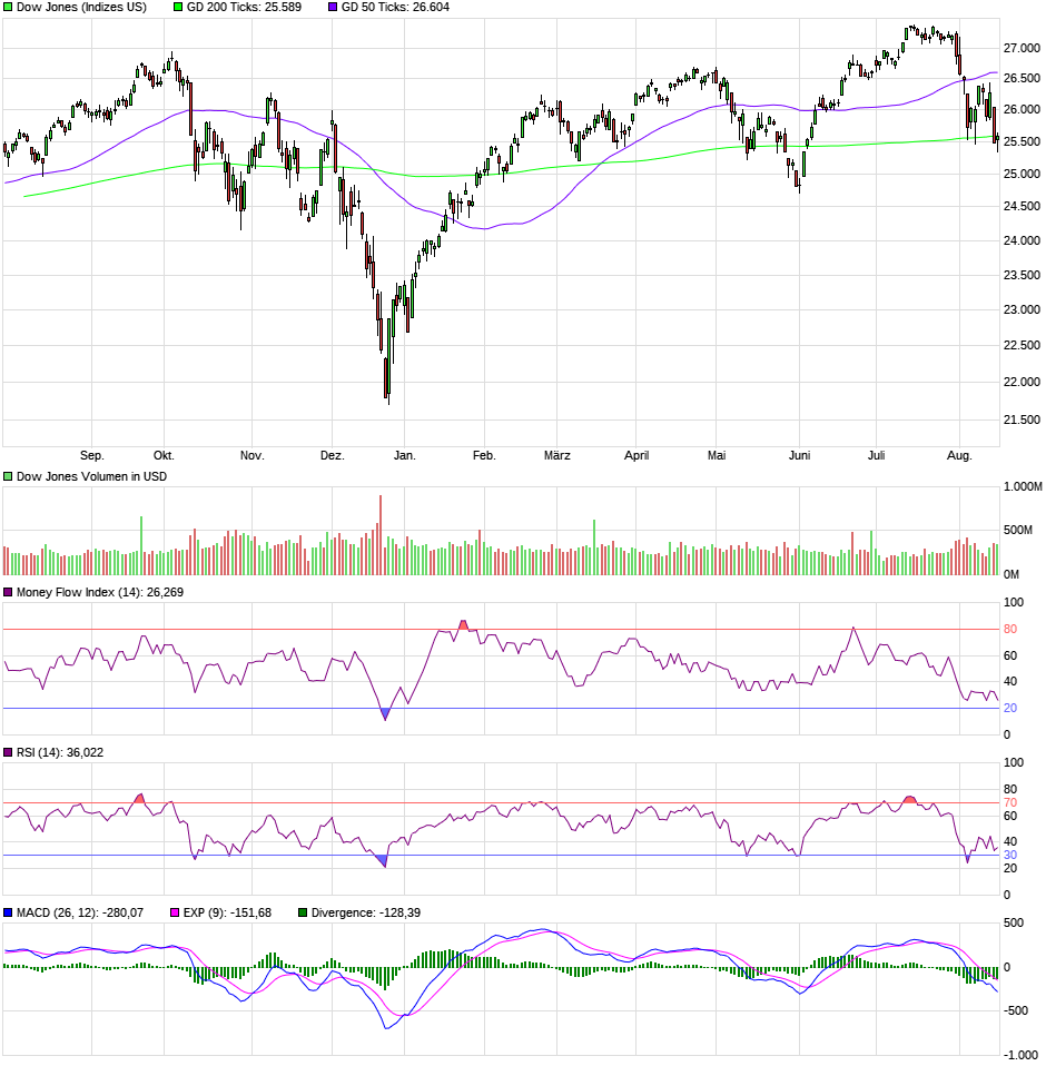 Der DOW derweil mit ner passablen Reversal-Chance nach der Korrektur... DAX hat natürlich etwas mehr gelitten, aber auch hier ist glaub ich zuviel Pessimismus fehl am Platze.