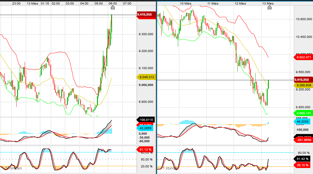 Anfang der Woche haben viele noch von 11.200 als kurzfristiges Ziel für den DAX gesprochen. Gestern um 13:00 stand der DAX noch bei 9.800, kurze Zeit später 7% tiefer. Ist die Situation innerhalb von 2h so viel schlechter geworden? "Eingepreist" ist hier nix, die Unsicherheit ist irrsinnig, und die Auswirkungen auf die Wirtschaft kaum absehbar.