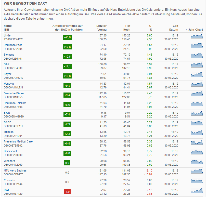 Ein letzter Punkt ist natürlich, dass die Verknappung von Angeboten bei gleichzeitig stark steigender Geldmenge nach klassischer Geldtheorie zu Inflation führen müsste. Man sollte daher vielleicht nicht aus dem Auge verlieren, dass Aktien innerhalb eines gewissen Rahmens einen Inflationsschutz bieten, da die Buchwerte der Unternehmen (gerade in good old Germany) in Maschinen und Anlagen stecken und damit einen realen Wert erzeugen. Einige Unternehmen zeigen bereits jetzt die Flexibilität mit diesen auch notfalls andere Produkte zu fertigen, weshalb man den Buchwert des DAX auch im Auge behalten sollte.