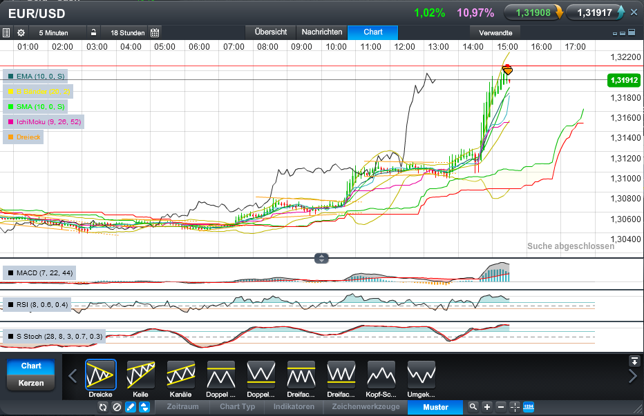 charttechnisch völlig richtig dein short, da indizes , runde marke etc dafür sprechen, da ich gewinn bin hoffe ich ein wenig auf den (unwahrscheinlichen) bruch der 1,32
