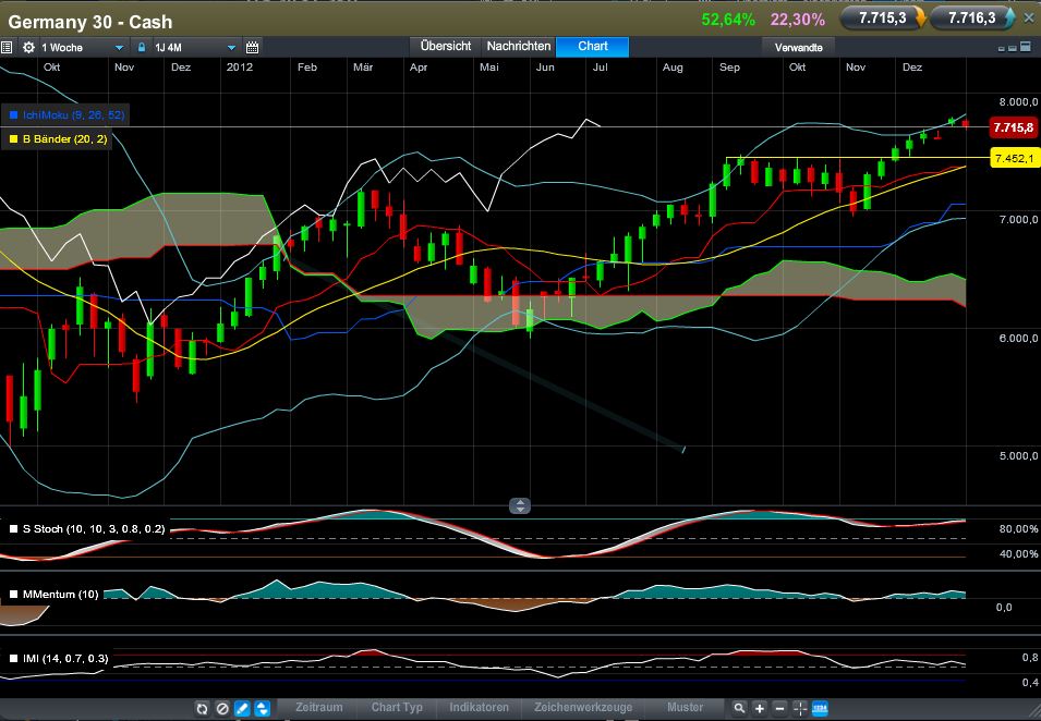 Ich handle mit CFD's vorwiegend DAX und DOW meistens 3 Kontrakte wobei ich anschließend, wenn ich im Plus bin nachkaufe meistens weitere 2 Kontrakte.