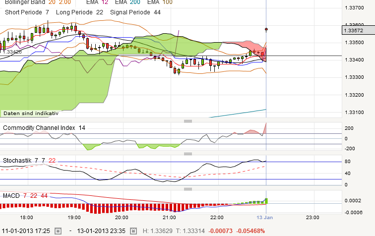 Nach Durchbruch des massiven Widerstandes von unten (JH vom 01.Mai 12) bei 13334/ 13368 zum Jahresanfang ´13, (Stichwort: fiscal-cliff, ) wurde am 08. Januar diese Marke, - nun als Support (sup - Unterstützung) fungierend, exakt intraday bei 13334 getestet, um später zeitweise sogar darunter zurückzufallen.