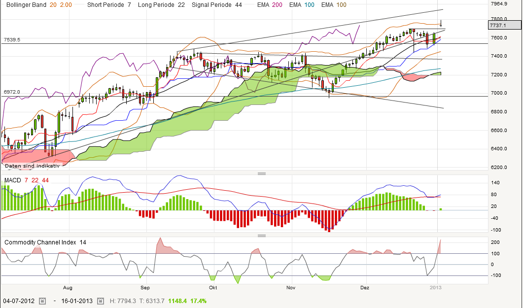Lächerlich, der DAX tut so als ob die Welt gerettet wurde weil das Fiscal Cliff umschifft wurde, das ist Börse für doofe.