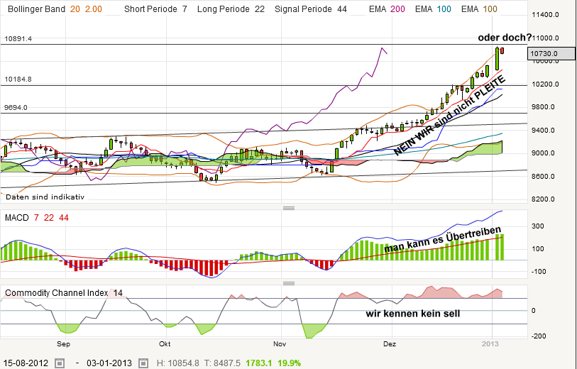Heute erst hochhalten dann wird fallen gelassen, Freitag dann 200 Punkte runter, so könnte die schöne neue Welt auch aussehen. Selbst hier sind ja schon eine Menge puscher, die den DAX nur noch steigen sehen.