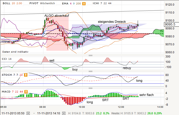 abprall auf max. 9096 danach 9190 mit anschließender korrektur auf 9189 zum weiteren anstieg auf 9350