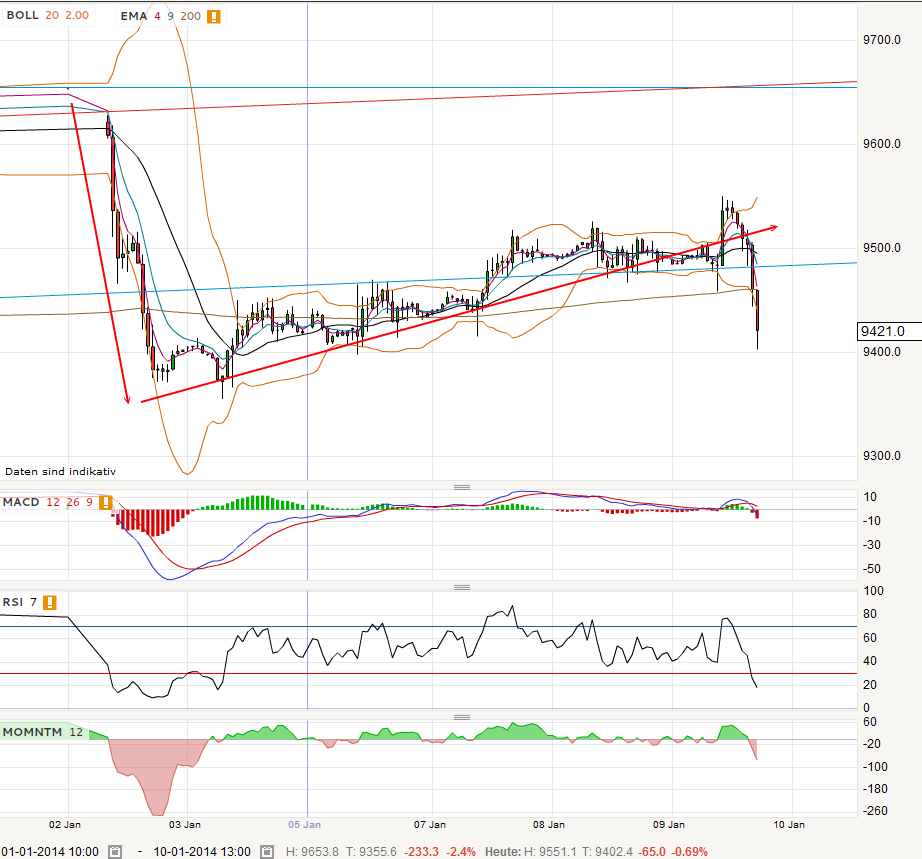 Unterstützungen: 9470 + 9425 + 9365 + 9330 + 9275 + 9227